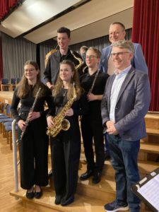Bei den Grünen Jägern gibt es bereits eine Handvoll von Absolventen dieser höchsten Leistungsstufe, einer der Grundsteine für die hohe musikalische Qualität unseres Musikvereines. Doch nun wagte sich zum ersten Mal in unserer Vereinsgeschichte ein Quartett aus vier jungen Musikern an dieses Unterfangen: Sophia Kern und Simeon Broß an der Querflöte, sowie Valerie Wöhrle und David Margstein am Saxofon. Und tatsächlich – nach Bestehen einer kurzen Vorprüfung über den musikalischen Leistungsstand war es Gewissheit: Die vier waren am Start und bei einem Erfolg würde sich die Anzahl der Goldträger bei den Grünen Jägern fast verdoppeln!